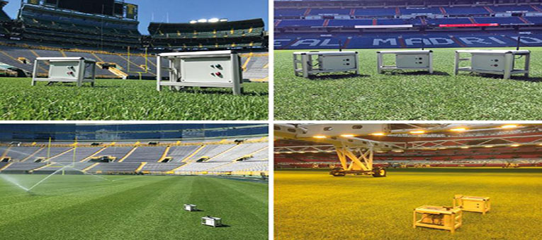 专业足球场(馆)由于封闭、半封闭的顶棚结构,创造了一个较为封闭的地上空气环境,因而引起草坪面层及以上空气流动性降低,温度、湿度升高,场馆内外空气交换不畅等问题。地上通风系统是一种辅助场馆内空气流通,改善草坪面层空气和环境的一套环境控制系统。依据其原理和作用区域分为草坪面风扇和场地风机两类。